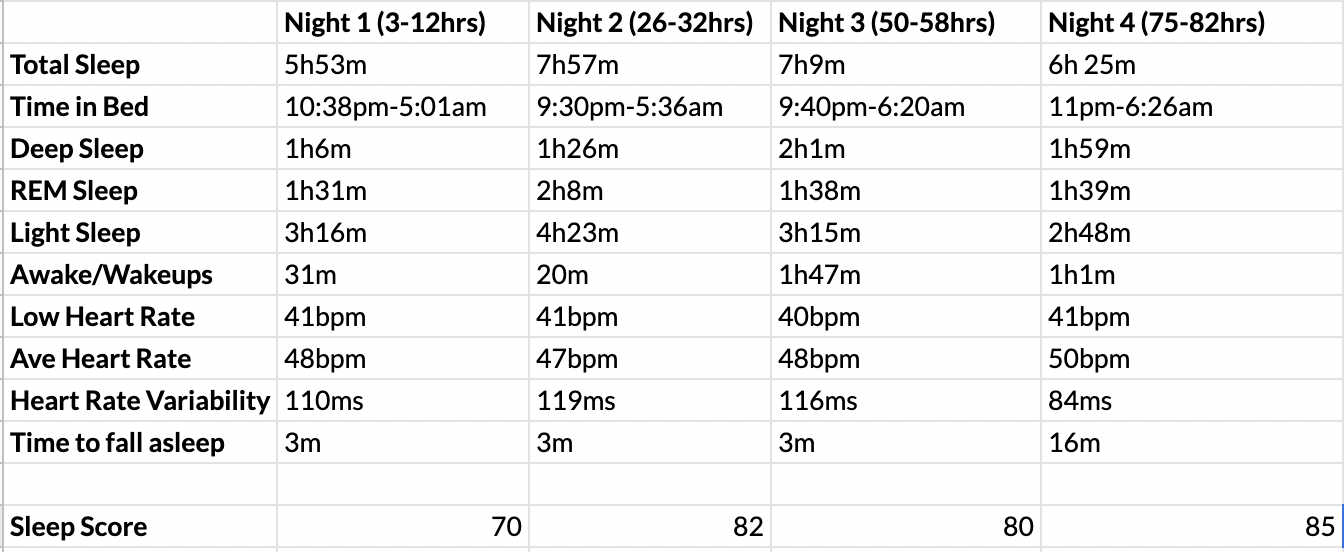 Anecdotally: I felt the most refreshed on the morning after the 4th night. More to come in the next blog about refeeding.